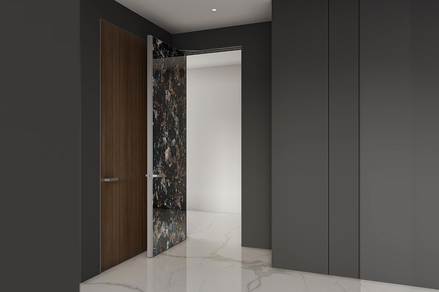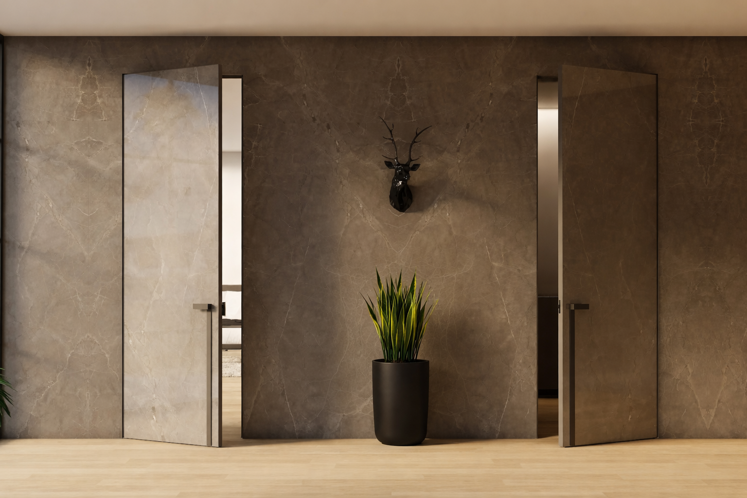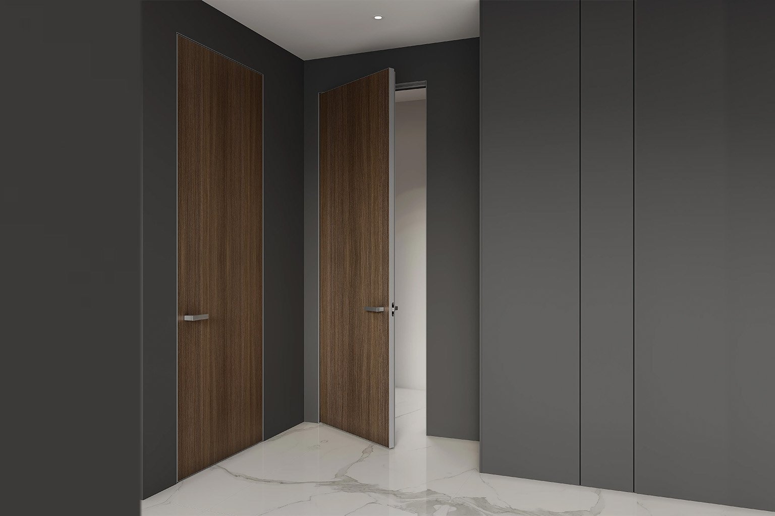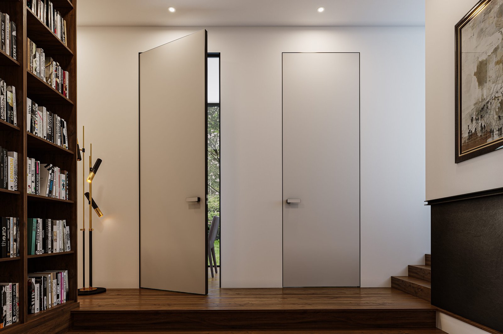 Discover the beauty of a flush door that blends seamlessly with the wall, creating a clean and uninterrupted interior flow. This modern design keeps the door nearly invisible while enhancing aesthetics with minimalist sophistication. Perfect for contemporary spaces, it offers privacy, functionality, and a refined architectural statement without visual clutter.